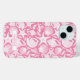 Customize this pink shell pattern iPhone 15 case with your your name in a trendy modern CAP font in pink on white. It's so modern and beachy!