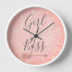 On an ombre pink blush backdrop are shimmery glittery stars with a matching arrow on the bottom where above that you can personalise it with a logo, name or letter or just keep as is with the phrase "Girl Boss". Modern girly theme.