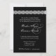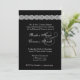 This contemporary design with lace accents on a black background and a beautiful unfolding rose makes an elegant wedding invitation, and is currently featured on an ice hued metallic paper which gives your invitation a warm shimmer and shine.You can experiment with different paper types to get just the look you want. If you want a glossy finish (which is only applied to the front side of your invitation) choose the linen, basic or metallic papers. If you want a matte finish, choose the specked, felt, or recycled. This invitation comes with an A7 sized envelope.