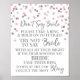 Don't say bride game sign poster for bridal shower in pink and silver confetti pattern. Please note glitter effect is photographic effect only.