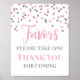 Favours sign for baby shower, bridal shower, birthday party or wedding in pink and silver confetti pattern. Please note glitter effect is photographic effect only.