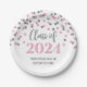 Pink Silver Confetti Graduation 2024 Paper Plate