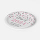 Customisable graduation party class of 2024 plates in glamourous silver and pink confetti pattern and elegant hand lettered style text.