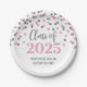 Pink Silver Confetti Graduation 2025 Paper Plate