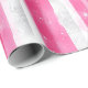 Pink Silver Glam Abstract Stripes Birthday Wrapping Paper