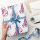 Pink Silver Glam Ice Skates Christmas Wrapping Paper