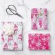 Pink Silver Glam Snowflakes Christmas Tree Snowman Wrapping Paper Sheet
