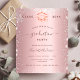 A modern, elegant and invitation. A blush pink faux metallic looking background decorated with faux silver glitter dust and a cap. Personalize and add a name, year, and party details.