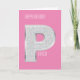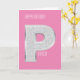Pink Silver Letter P grey monogram faux glitter glam personalised with name birthday card