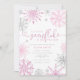 Pink silver little snowflake girl baby shower invitation