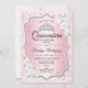 Quinceanera Party Invitation. Elegant design in pink and silver. Features script font, white roses, tiara and confetti. Classy design with faux glitter silver foil. Perfect for a stylish glam celebration.