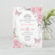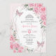 Pink Silver Roses Butterfly Quinceañera Birthday Invitation