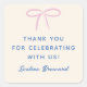 Pink Simple Bow Custom Message and Name Square Sticker