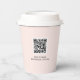 This minimal paper cup features a simple logo, QR code template with cute heart on a pink background. Add your logo, QR code and customise the text with your information. You can use this personalised cup at your business place, shops, company or any event.