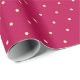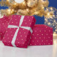 Wrapping paper featuring a simple polka dot pattern on a dark pink background.