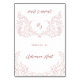 Elegant sketched vintage flourish frame with couple's monogram and stylish script font in dusty pink and burgundy red, modern and classy, great wedding place cards for modern classic wedding, luxe vintage wedding and romantic formal wedding.