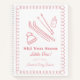 This cute and modern ski theme "Ski you soon little one" girl's baby shower guest book features hand-drawn illustrations in soft pink, including skis, poles, a beanie, and a sweet baby bottle—framed by a playful curly doodle border on a crisp white background. A unique and charming choice for parents-to-be who love the slopes, ski lodge coziness, and celebrating in winter style.