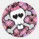 Pink Skull and Crossbones with Hearts and Bow Classic Round Sticker