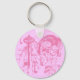 A pink collage of vintage illustrations of skulls and bones, keys and roses.