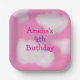 Pink sky and fluffy clouds Birthday Paper Plate