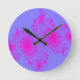 This awesome clock features a pattern that makes me think of a pink sneeze. It has pink splodges on a blue background that look like a pink sneeze on a blue tissue. It could also be interpreted as disco lights, spots or anything else that comes to mind while looking at it. The wonder of this design is that it’s up to the observer to decide what they see in it.
