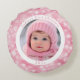 Pink Snowflake Baby's First Christmas Photo Round Cushion