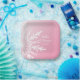 Personalize the festive Pink Snowflake Winter Wedding Paper Disposable Plates with the names of the bride and groom and marriage ceremony date. These elegant custom wintery wedding paper plates feature an intricate white snowflake design with a pink gradient background. Suitable for a classy December, January or February winter engagement party, bridal shower or reception theme.