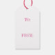 Pretty and delicate, these pink and orange snowflakes decorate this set of Christmas gift tags.