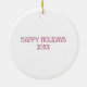 Decorate your Christmas tree with your own unique style this holiday season with this cute and whimsical 3D pink snowman ornament. Customise the back of the ornament with your own text or leave as is with message of "Happy Holidays 20xx".