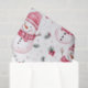 These cute little snowmen look like they are so happy out in the snow. They are all dressed up in fun bright pink knit winter scarves with their matching caps. This whimsical pattern also includes some bits of pink and red holiday berries and Yuletide pine greenery in a vintage watercolor design.