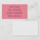Stylish solid pink colour business card to publicise yourself, your business or your event. Click the customise button to change the position of the wording as well as the colour and font of the letters, or remove the lettering to leave the elegant design on the front and put your details on the back of the business card.