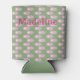 This can cooler has a mid-century modern design of pink ovals connected by pink lines with off-white circles all on a field of light green. Want different colours? Message me.