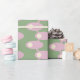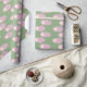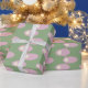This wrapping paper has a mid-century modern design of pink ovals connected by pink lines with off-white circles all on a field of light green. Want different colours? Message me.