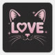 Pink Sparkle Cat Square Sticker