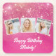 Pink Sparkle Photo Collage Girls Birthday Party Square Paper Coaster
