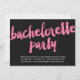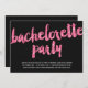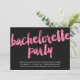 This glam black and pink bachelorette party invitation features a bold calligraphy script, a faux pink glitter effect, and a black background. Personalise the party details, and add photos or text to the back of the card if desired.