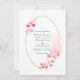 Pink watercolor floral spring wedding invite featuring sakura blossom with gold geometric frame customizable to your event specifics. Ideal for any given theme or garden wedding. The QR code on the reverse directs to your wedding site where people can learn more and rsvp.