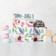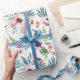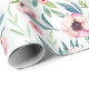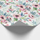 Watercolor springtime floral pattern gift wrap in pastel shades of pink and blue.
