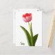 Spring floral nature photography of one pink tulip isolated against a transparent background. The caption, "Tulip" is printed in green on the image.