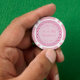There is a pale pink circle with white marbled patterns on it which contains customisable text so you can personalise this design.