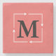 Pink Square Monogram Personalised Stone Coaster