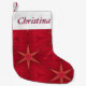 A pink star Christmas stocking. Customisable name in pink with a black shadow against a white background.