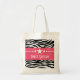 Trendy and modern Stars Zebra Print Sweet Sixteen Tote Bag featuring a chic black and white zebra print background and a bold magenta border adorned with a fun star motif. This girly bag is a hip and stylish choice for holding fun sweet 16 party swag. Easy to customise, simply add the personalised text of your choosing. Click "Customise It" to find more personalisation options.