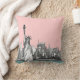 A modern design depicting the Statue of Liberty in New York in a sketched effect on a pink throw pillow. Want a different colour, no problem just click on customise and edit background where you will find a choice of other colours at no extra cost.