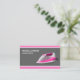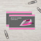 Professional dry cleaner business card featuring a modern steam iron on a grey background. Personalise it with your name and contact details to make a lasting first impression.
