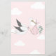 The design features a sweet hand-drawn stork a with fluffy white cloud design. The script heading is not editable. All of the other text is fully editable. For more advanced customisation of this design, simply select the "Customise It" button above.