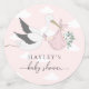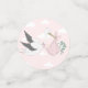 The design features a sweet hand-drawn stork with a fluffy white cloud design. The script heading is not editable. All of the other text is fully editable. For more advanced customisation of this design, simply select the "Customise It" button above.