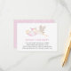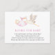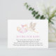 A book request insert card for baby shower. Featuring a watercolor stork carrying a baby wrapped in a pink blanket with poem: "ONE SMALL REQUEST, WE HOPE NOT TOO HARD