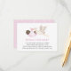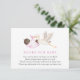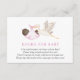 A book request insert card for baby shower. Featuring a watercolor stork carrying a baby wrapped in a pink blanket with poem: "ONE SMALL REQUEST, WE HOPE NOT TOO HARD