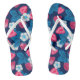 Pink strawberries on blue flip flops